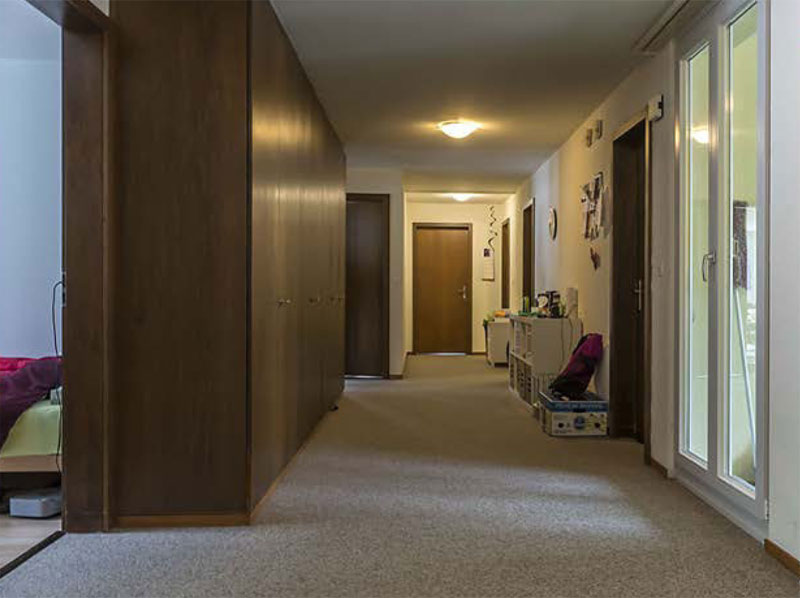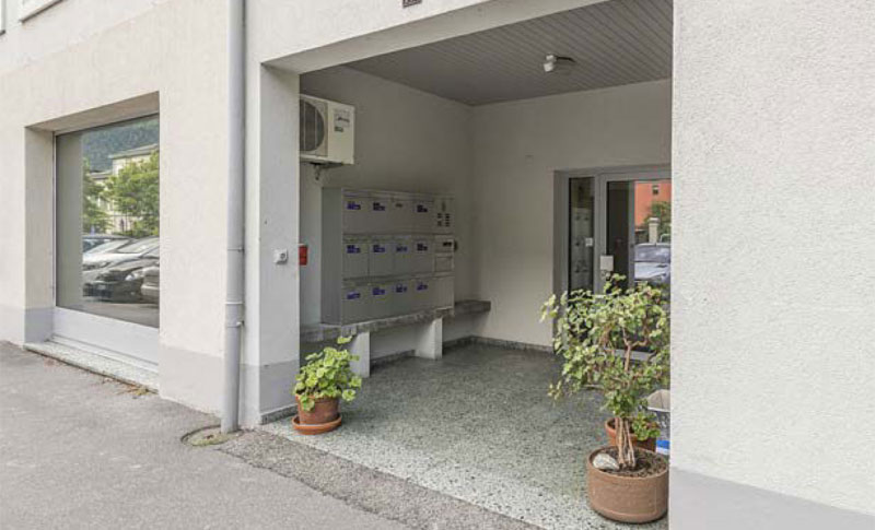 An bester Lage, sehr gut erschlossen, umgeben von öffentlichen Parkplätzen. Neben dem geschützten Hauseingang befindet sich eine grosse Garage für Autos und Velos.